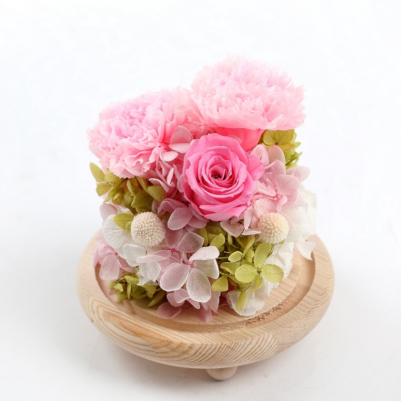 將永生花染色處理,3到5天晾干,成品花頭,整個(gè)制作過程需要10天以上。